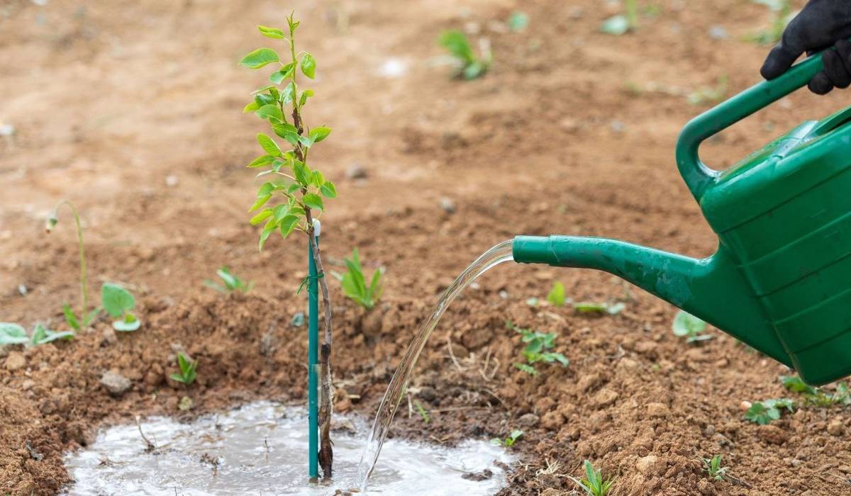 В первые 2 месяца важно регулярно поливать саженцы не реже 2 раз в неделю, расходуя на одно растение до 10 литров воды. Если погода жаркая и сухая, частоту поливов увеличивают. Главное, чтобы в районе приствольного круга почва находилась в увлажненном состоянии. После полива проводят рыхление почвы и удаление сорняков. Вокруг молодых посадок рекомендуется провести мульчирование из перегноя, компоста, перепревшей соломы или опилок. Так грунт будет защищен от высыхания, а корневая система будет получать дополнительное питание органическими соединениями.